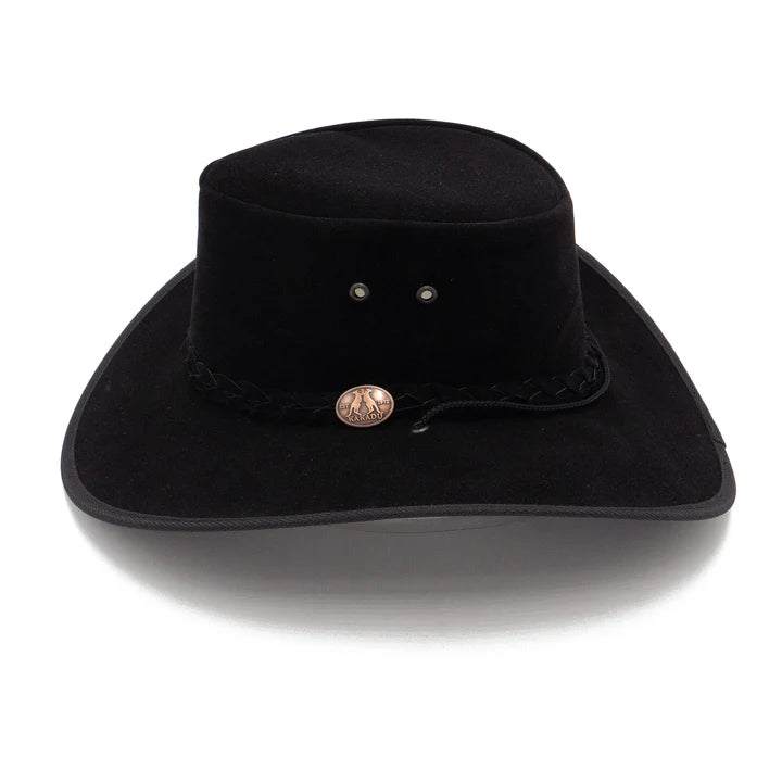 The Kalgoorlie Wide Brim Soaka Hat is your go-to companion for beating the heat in true Aussie style. Made from lightweight, water-resistant Soaka micro-suede, this hat delivers serious comfort with built-in evaporative cooling—just wet it, wear it, and let the breeze do the rest. Featuring a classic block, a generous 9 cm brim, and a crown height of 8.5 cm, it offers excellent sun protection with a UPF 50+ rating. The hand-braided hatband adds a rugged touch, while the built-in chinstrap keeps it secure, even when the wind picks up. Proudly Australian-made, the Kalgoorlie is perfect for those chasing shade, adventure, and outback-ready performance.
